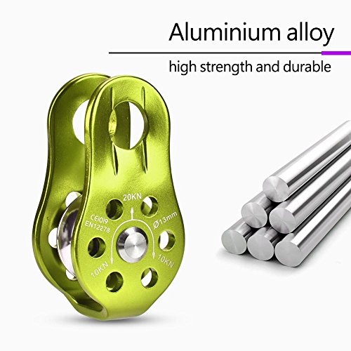 ✅【Usa la Sicurezza】Carrucola resistente, può resistere a una forza di trazione di circa 1000 kg, le piastre laterali possono impedire lo slittamento della fune, super affidabili per mantenere la tua sicurezza in arrampicata.