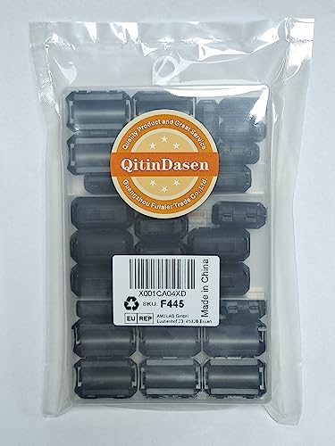 QitinDasen 25Pcs Nero Ferrite Anello Nucleo Set, RFI EMI Rumore Soppressore Cavo Clip, Anti-Interferenza Alta Frequenza Filtro (3.5mm 5mm 7mm 9mm 13mm Diametro Interno)
