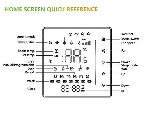 ☆ Attenzione: (1). Il termostato intelligente per riscaldamento WiFi Qiumi supporta programmi automatici completi o configurazione manuale. Puoi utilizzare il controllo manuale o connetterti al WiFi e rendere i tuoi programmi di riscaldamento tramite l'app smartphone, regolando o controllando facilmente la temperatura della tua casa. Utilizzato solo sotto il Wi-Fi a 2,4 Ghz, non 5 Ghz.