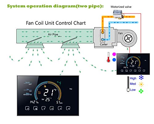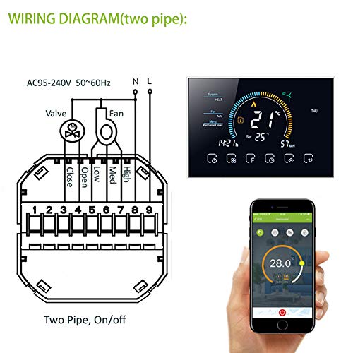 Qiumi Termostato Smart Wifi Regolatore di temperatura programmabile per aria condizionata con schermo LCD a 2 tubi, Visualizzazione meteo, indice UV Funziona con Alexa Google Home 95~240 V CA.