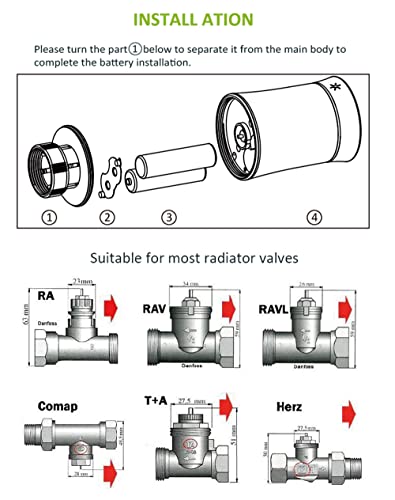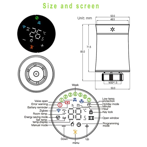 ☆. Design del sensore esterno per una misurazione più accurata: funziona molto bene con sensore esterno sulla valvola che fornisce letture accurate della temperatura domestica, garantisce un controllo molto più comodo e intelligente del tuo stile di vita intelligente