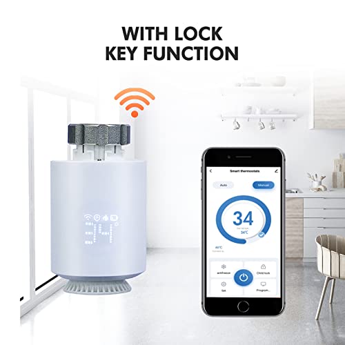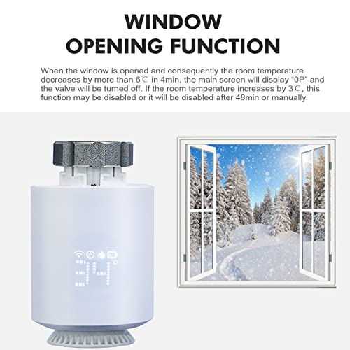 Altre funzioni: la valvola termostatica è dotata anche di protezione antigelo, regolazione della luminosità, modalità di risparmio energetico e può controllare le variazioni di temperatura e altre funzioni. Il termostato funziona su una batteria e la potenza verrà visualizzata sullo schermo in modo da poter rilevare il consumo energetico e sostituire la batteria in tempo