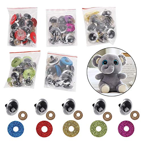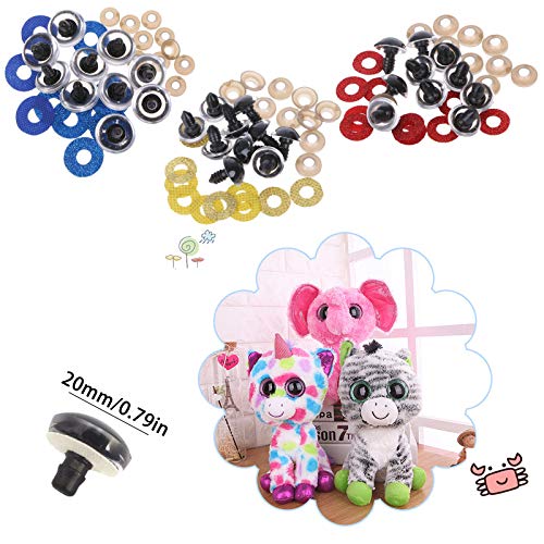 QIUUE Occhi di Sicurezza Glitterati Occhi Teddy Bear Plastic Occhi di Sicurezza con Rondelle Occhi di plastica dell'orsacchiotto Plastica DIY Craft Occhi 20mm per Bambole di Peluche(50 Pezzi)