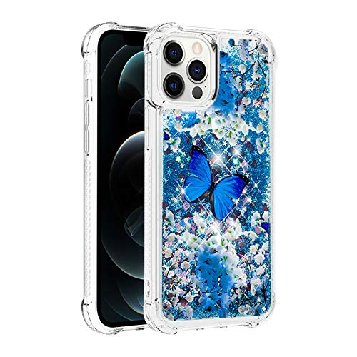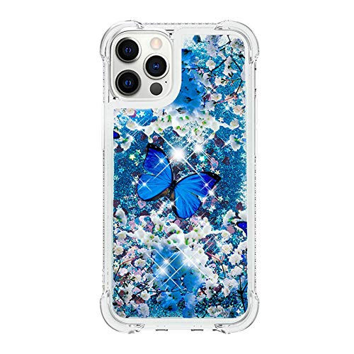 QIWEIQING Compatibili con Custodia per iPhone 12 Pro Max,Glitter Custodia TPU Silicone Protettivo Morbido Brillantini Quicksand Cover per iPhone 12 Pro Max Blue Butterfly YB