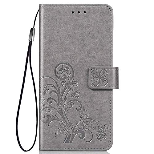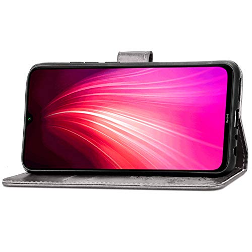 QIWEIQING Compatibili con Xiaomi Redmi Note 8T Custodia, Flip Folio Custodia in Pelle PU con Magnetica Funzione di appoggio und e Porta Carte per Xiaomi Redmi Note 8T Leaf Gray SD