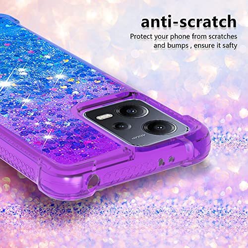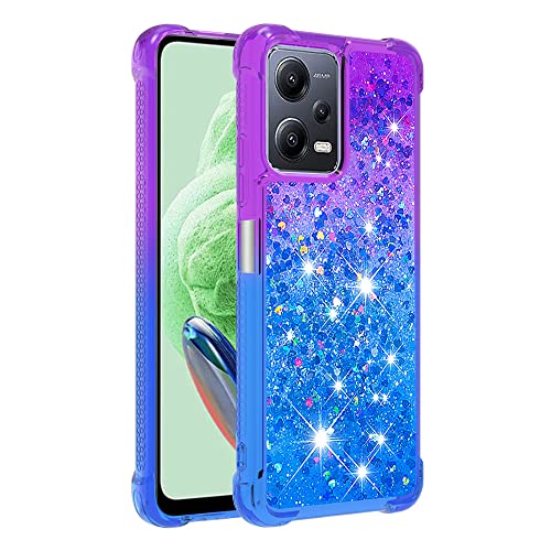 QIWEIQING Cover per Redmi Note 12 5G, Glitter Bling Clear Liquido Custodia TPU Silicone Morbido Brillantini Quicksand Antiurto Protettivo Case Cover per Xiaomi Poco X5 5G.Purple Blue YBJ