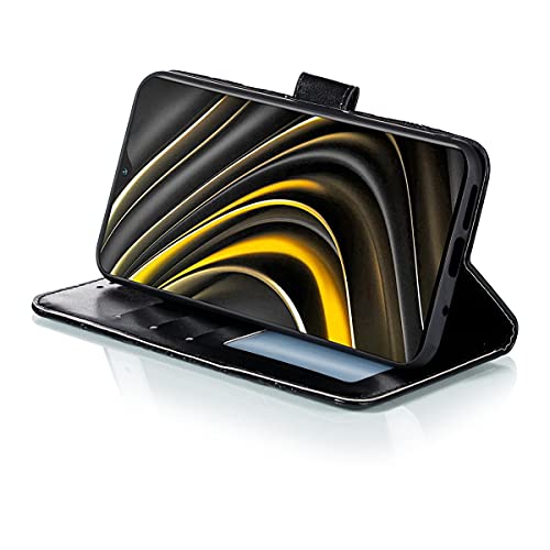 QIWEIQING Xiaomi Mi Poco M3 / Redmi Mi 9T / custodia a libro custodia in pelle con funzione di supporto custodia per cellulare con chiusure magnetiche a strato di carta nero PJ.