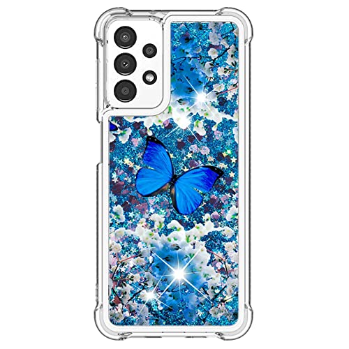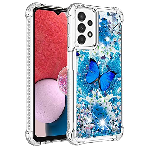 QIWEIQINGWH Compatibile con Samsung Galaxy A13 4G Glitter Coque, Girls Glitter Phone Cover, Cover di protezione in silicone trasparente per Samsung Galaxy A13 4G Blue Butterfly YB