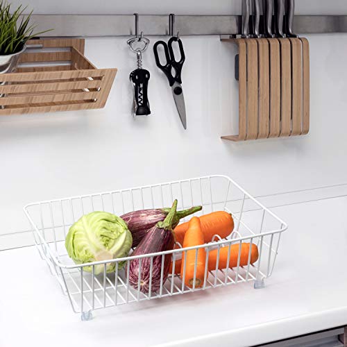 ✔ FORTE E ROBUSTO - Questo cestello è realizzato in robusto acciaio inossidabile 304 resistente agli alimenti, antiruggine, anticorrosivo, acido e resistenza agli alcali per garantire una lunga durata. Bracci e piedi in gomma estensibili antiscivolo proteggono il bancone e il lavandino dai graffi