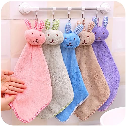 Qixuer 5 Pezzi Asciugamani Bambini,Asciugamani Per Bambini Asciugamano Microfibra Little Rabbit Carino e Anello Appendere Asciugamani Asilo per Viso e Mani Assorbente Asciugamani per Cucina Bagno