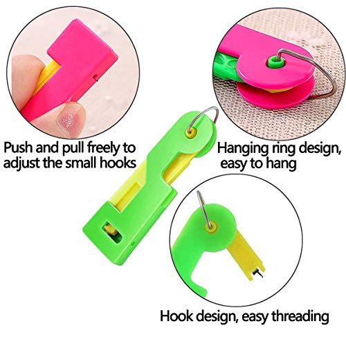 [Facile da trasportare e da usare] Queste filettatrici automatiche sono di piccole dimensioni e facili da trasportare. Basta inserire la punta dell'ago verso l'alto nel foro, premere la parte centrale finché il piccolo gancio non si estende, legare il filo da cucito sul gancio e lasciarlo andare, quindi estrarre l'ago. I passaggi sono semplici e facili da usare.