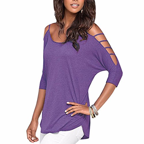 QIYUN.Z Donna olid Colore exy 3/4 leeve trappola paghetti Houlder fredda tunica Top hirts camicetta Piccolo Viola
