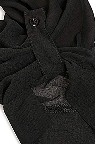 QIYUN.Z Donna Pulsante casual manica lunga con V-Collo chiffon Decor Bordo irregolare Camicie Tops 4XL Nero