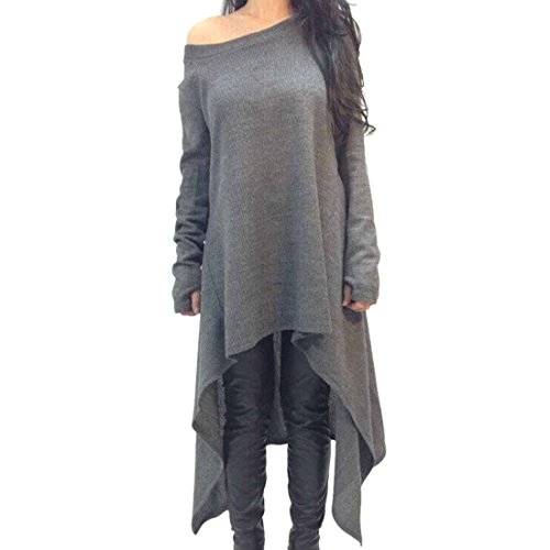 QIYUN.Z Dita Donne Grige di Modo Legati A Maniche Lunghe Bordo Irregolare Magliette Vestito
