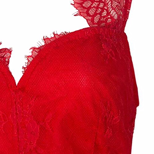 QIYUN.Z Delle Donne Vestito Da Partito Scollo A V Senza Maniche In Pizzo Backless Abito Rosso Lungo Maxi