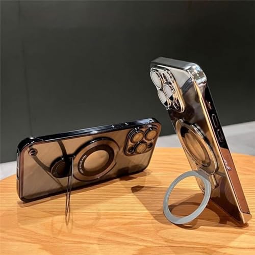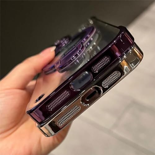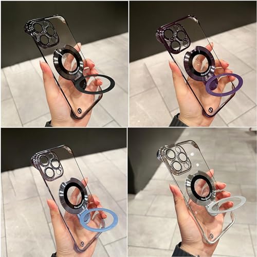 QJDTZMD Frameless Magnetic Phone Case with Invisible Ring Stand, Ultra Thin Plating Lens Protector Phone Case, Magnetic Stand Case for iPhone 15 14 13 Pro Max Clear Phone Case (12PRO MAX,Blue)