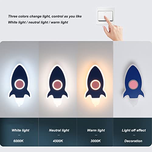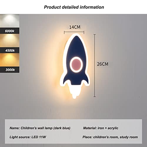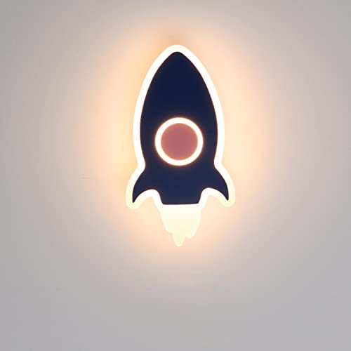 QJUZO Lampada Da Parete A LED Per Bambini, Lampada Da Parete A Forma Di Razzo Cartone Animato Lampada Da Comodino Applique Da Parete Interno Moderno Per Cameretta Ragazzo/Ragazza