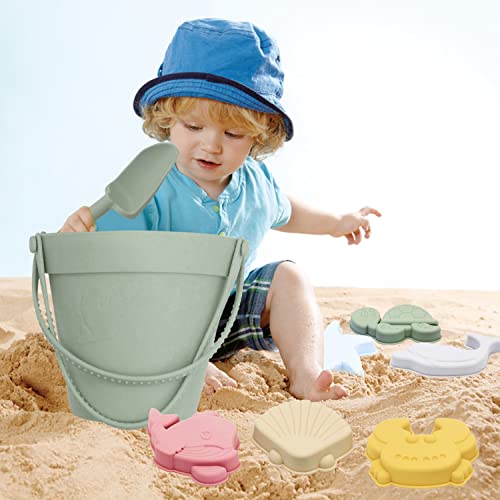 【set di giochi di sabbia da spiaggia】 Il nostro giochi spiaggia ha un secchiello spiaggia in silicone pieghevole e una pala di sabbia robusta, 6 stampi in silicone a tema oceano 3D di diversi colori includono balene, delfini, tartarughe, granchi di mare, stelle marine, capesante. Sensazione morbida facile da impugnare, la finitura opaca sembra elegante, gli stampi 3D colorati possono mantenere la varietà di colori.