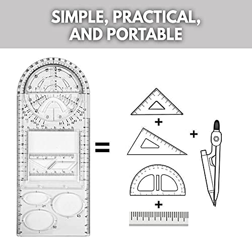 QKFON - Righello geometrico multifunzionale, modello geometrico per disegno geometrico per forniture scolastiche e ufficio