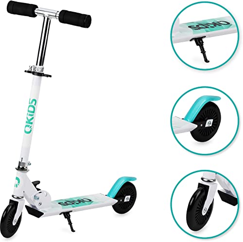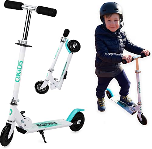 QKids Monopattino a due ruote per bambini, pieghevole, blu, fino a 50 kg, Età: 3+, Monopattino