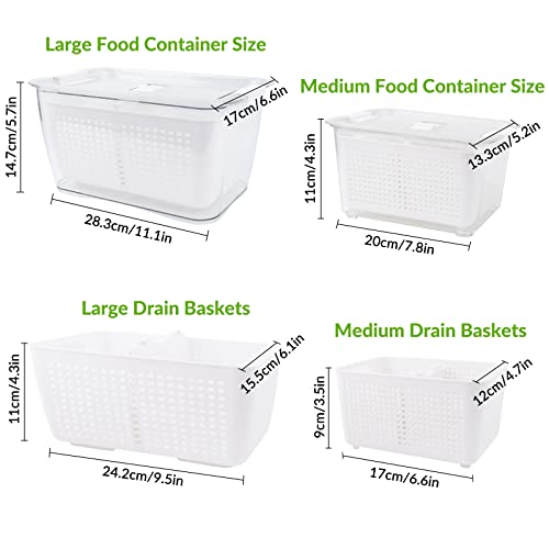 QKTYB Contenitori Ermetici Alimentari con Cestello di scarico, 4,5 L+1,7L Contenitore per frutta e verdura fresca, Contenitore Salvafreschezza Ermetico con piastra divisoria pieghevole, prese d'aria