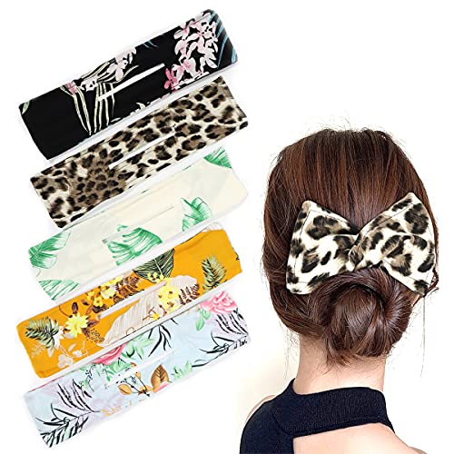 QKTYB Creatore Ciambelle per Capelli Strumento, Set di 5 Creatore di Ciambelle Magico Clip, Riutilizzabili Creatore di Panini Abili per Capelli Fascia Accessori per Capelli in Tessuto per Donne