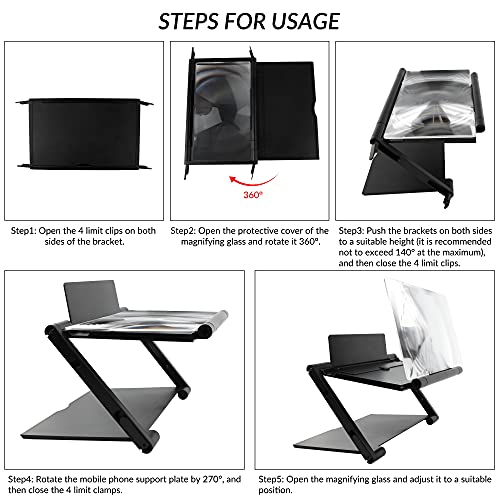 【Pieghevole su e giù】 Lente d'ingrandimento verticale pieghevole ad alta definizione per schermo Blu-ray 3D, facile da trasportare, può essere sollevata e abbassata per regolare un'altezza confortevole. Il design pieghevole retrattile può essere inserito nella borsa. Adatto per interni, campeggio, viaggi, tempo libero e uso ovunque.