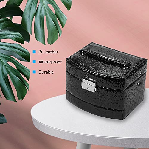 QKTYB Porta Gioielli Donna, Cofanetto Portagioie con Specchio e Serratura, Organizzatore Gioielli per Anelli Bracciali Orecchini Collane Nero Portagioie Piccolo