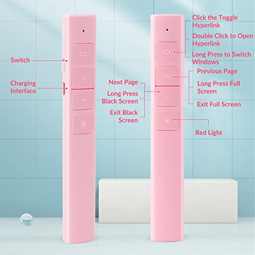 QKTYB Presenter Wireless 2.4GHZ Penna Telecomando Senza con Raggio Lungo 100m Fili Hyperlink Volume Control Presenter con luce rossa brillante Ricaricabile Supporto Del Puntatore Di Presentazione
