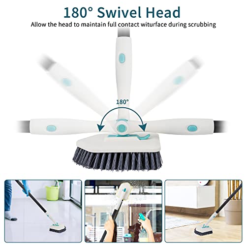 QKTYB 3 in 1 spazzola pulizia doccia,132cm Manico Lungo spazzolone per pavimenti con 4 testine di ricambio,Rotante a 180° Spazzola per la pulizia della doccia per Vasca,Piastrelle,Pavimento