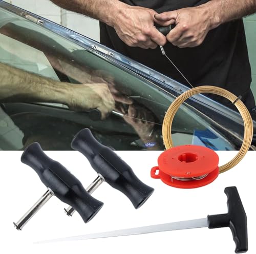【Kit completo di strumenti per la rimozione del parabrezza】 Riceverai 5 strumenti per lo smontaggio del parabrezza inclusi 1 martello a forma di T, 2 manici in acciaio inossidabile a forma di T e 2 bobine di fune metallica. Soddisfa le tue diverse esigenze.
