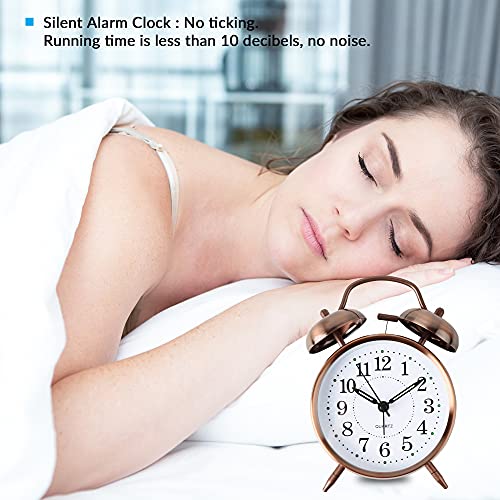 QKTYB Sveglia Campana Sveglia da Comodino Con Doppio Campanello classica Sveglia da comodino vecchio stile con la campana gemellata di non ticchettio Sveglia Classica Vintage Forte (Bronzo rosso)