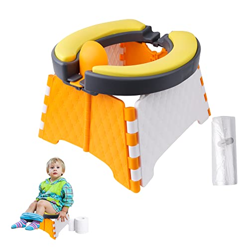 QKTYB Vasino Da Viaggio Sedia da Toilette Pieghevole Per Addestramento Per Bambini con Borsa da Viaggio Vasino da bagno portatile da viaggio per auto, escursionismo, campeggio, arancia