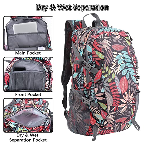 QKTYB Zaino Ultraleggero Pieghevole 40L da Hiking Zaino Ripiegabile Resistente all'Acqua con Strisce Riflettenti Scomparto per il Bagnato/Asciutto per Donna Uomo Viaggio Campeggio Città Sportivo