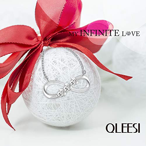 QLEESI Collana Infinity in Argento Sterling 925 per Mamma Figlia Moglie Collana con Cuore in Zirconi Cubici per lei Il Regalo di Compleanno per la Festa della Mamma