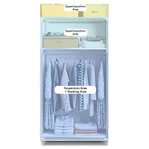 【Spazio di Archiviazione Sufficiente】-- L'armadio portatile è progettato con 2 scomparti per fornire spazio di archiviazione per diversi oggetti. La parte superiore può contenere giocattoli, trapunte e coperte. C'è un enorme spazio appeso nell'altro strato, con rotaie per abiti per appendere cappotti, pantaloni. Anche se delicato e piccolo, c'è ampio spazio per soddisfare le vostre esigenze. Il design aperto per abbinare rapidamente il tuo outfit per il giorno, risparmiando tempo.