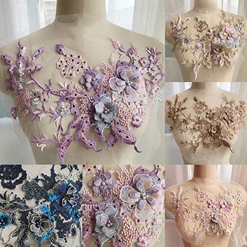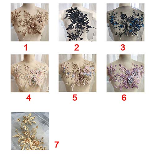QLING Ricamo 3D perline pizzo applique floreale strass tulle toppe tessuto per decorazioni fai da te abiti da sposa abiti da sposa decorazione ricamo (Marca Dragon 2)