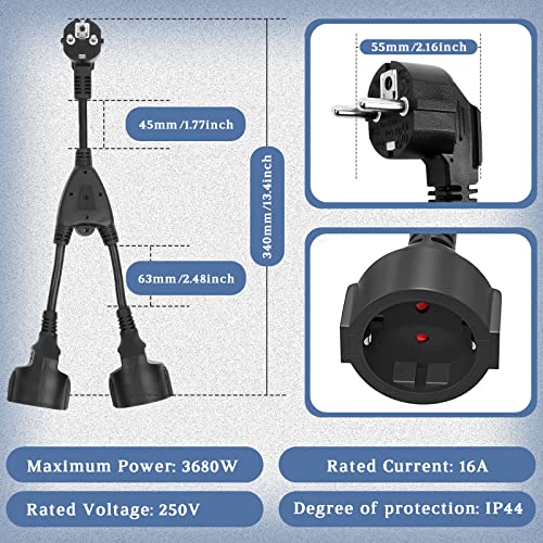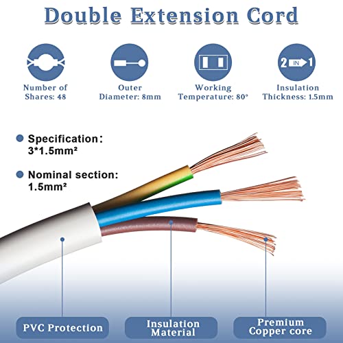 【Qualità Garantita】La presa a 2 vie è realizzata in PVC e gomma di alta qualità. L'uso di rame di alta qualità come conduttore riduce il consumo quando si utilizzano apparecchiature elettriche. La spina e il cavo di alimentazione hanno superato la certificazione VDE e la spina terminale ha superato la certificazione CE e GS. Puoi usarlo con totale sicurezza.