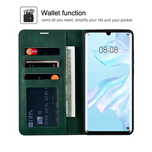 QLTYPRI Custodia per Huawei P30 Pro, in pelle, sottile, con scomparto per carte di credito, compatibile con Huawei P30 Pro, colore: verde