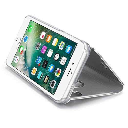 QLTYPRI Case for iPhone 6 6S iPhone 7 iPhone 8, Luxury Fashion Elegant [Perspective] [Mirror] Shell [Stand Function] PC PU Leather Case Shockproof Anti-scratch Ultra Thin Cover Folio Flip Case for iPhone 6/6S/7/8 - Silver