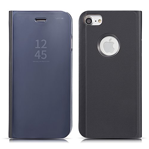 QLTYPRI Case for iPhone 6 Plus 6S Plus iPhone 7 Plus iPhone 8 Plus, Luxury Fashion Elegant [Perspective] [Mirror] Shell [Stand Function] PC PU Leather Case Shockproof Anti-scratch Ultra Thin Cover Folio Flip Case for iPhone 6 Plus/6S Plus/7 Plus/8 Plus - Black