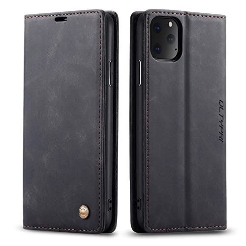 QLTYPRI Case for iPhone 11 Pro Max, Vintage PU Leather Wallet Case Card Slot Kickstand Magnetic Closure Shockproof Flip Folio Book Case Cover for iPhone 11 Pro Max - Black