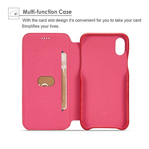 QLTYPRI Case for iPhone X, Vintage Slim Magnetic Closure PU Leather Case with Stand Function & Credit Card Slot Holder Shockproof Flip Wallet Cover for iPhone X - Red