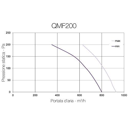 QMF200S di Aerauliqa - Ventilatore elico-centrifugo in linea diam.198mm - 120/145W - 928/800m3/h - cod. 002850 - 2 velocità