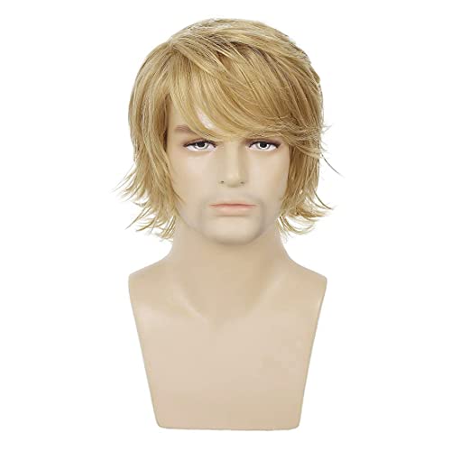 Qnbiar Parrucca Bionda per Uomo Parrucca Bionda a Strati Lanuginosi Naturali Parrucche Sintetiche per Capelli Cosplay di Halloween per Uomo