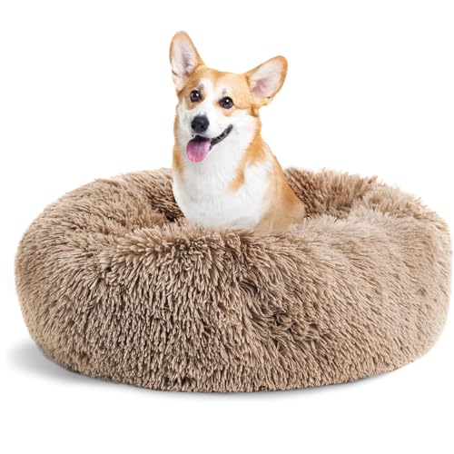 QOFLY Cuccia per cani soffice, 40 cm, marrone ciambella, cuscino per cani e gatti