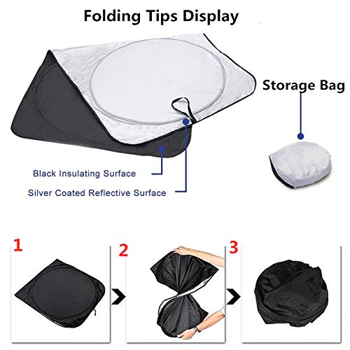 QUALITÀ PREMIUM: i parasole per finestrini anteriori dell'auto realizzati in tessuto rivestito in argento 170T per riflettere i raggi UV, senza odore chimico, proteggendo i volanti, i cruscotti e gli interni della tua auto dai danni dei raggi UV.