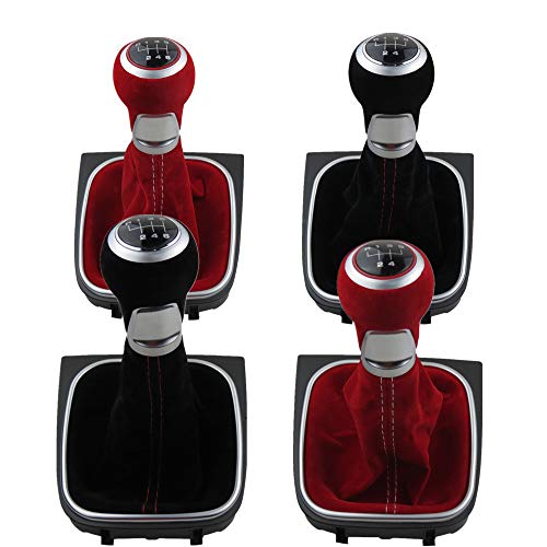 QOHFLD 5 Stivale con pomello del cambio completo a 6 marce, per VW Golf 5 6 MK5 MK6 R32 GTI 04 09, pelle scamosciata morbida nera rossa