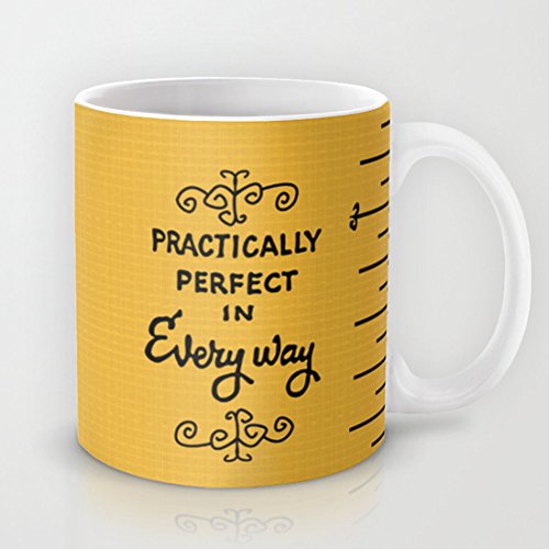 QoiueoF - Tazza con citazione di Mary Poppins: "Practically Perfect in Every Way" e disegno di metro a nastro, da 325 ml