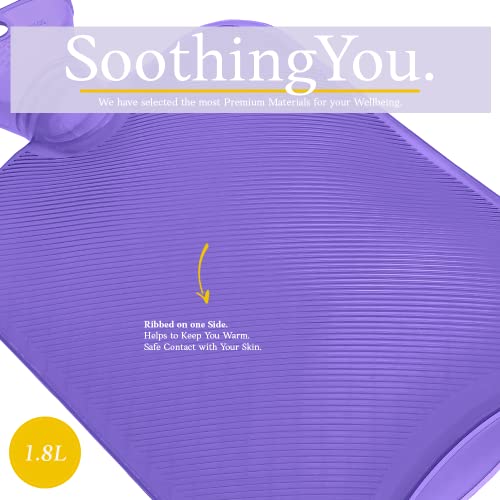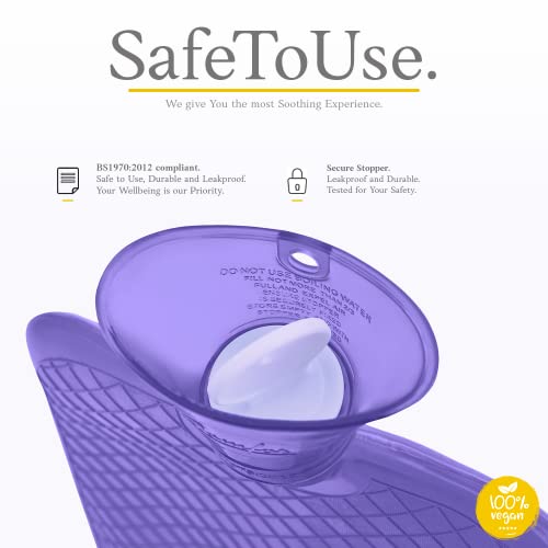 Qomfor Borsa Acqua Calda Premium - 1,8L Grande Capienza - Boule Acqua Calda PVC - Borsa dell'Acqua Calda per Alleviare il Dolore - Purple